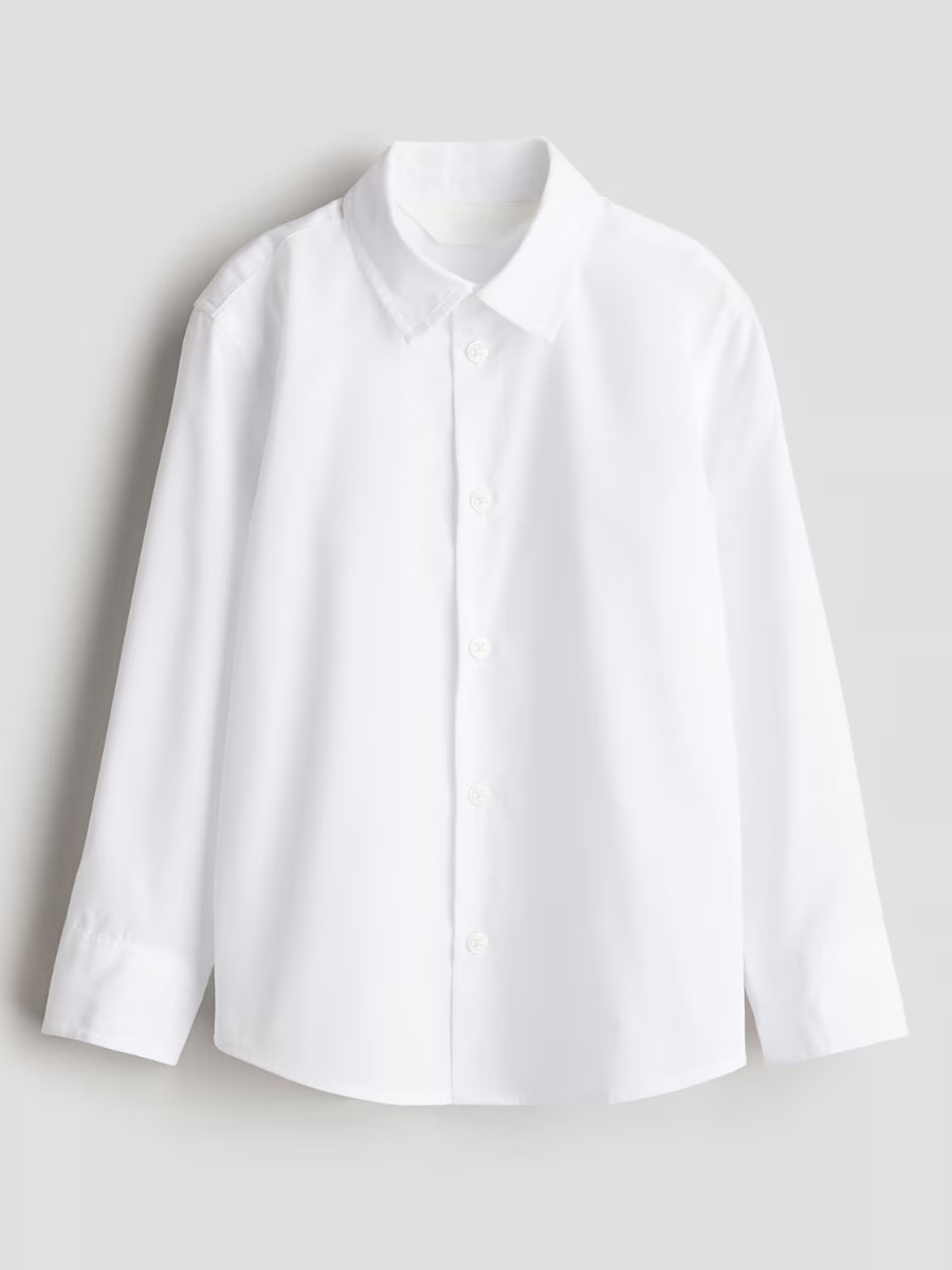 Cămașă din țesătură cu finisaj ușor de călcat, cu guler răsfrânt, cu nasturi pe toată lungimea în față și cu platcă în strat dublu la spate. Mâneci lungi cu nasturi la manșete. Croială ușor rotunjită la bază.
